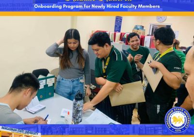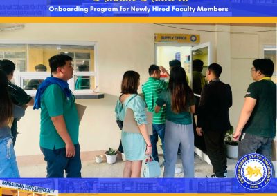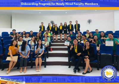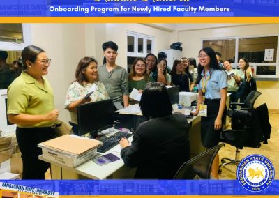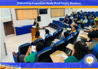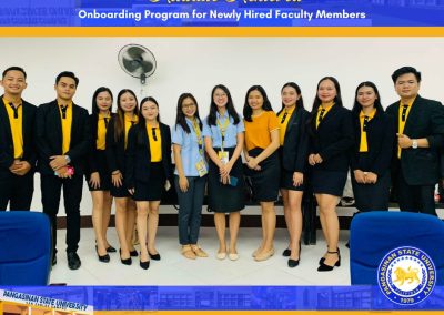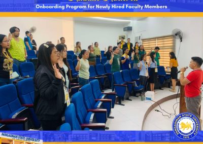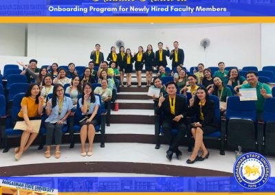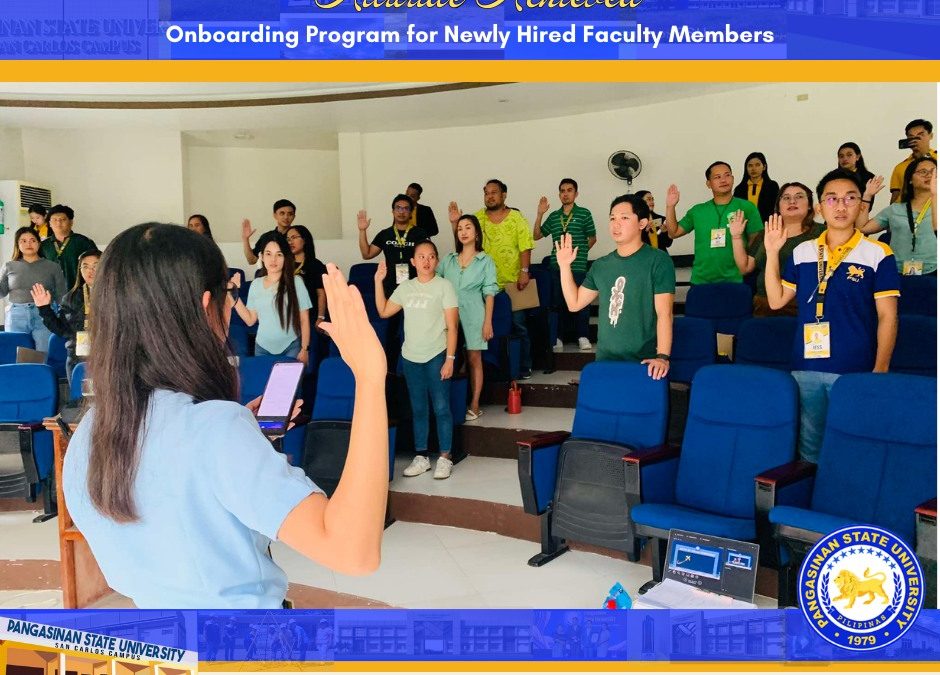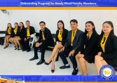 The onboarding program is an official welcome and orientation program for newly-hired employees to the campus that is organized every after the oathtaking ceremony with the University President. Through such events, Pangasinan State University may steer its employees toward the road to quality education and excellence by molding them to become people’s champions, continuous- innovative learners, and community developers to the university and society.