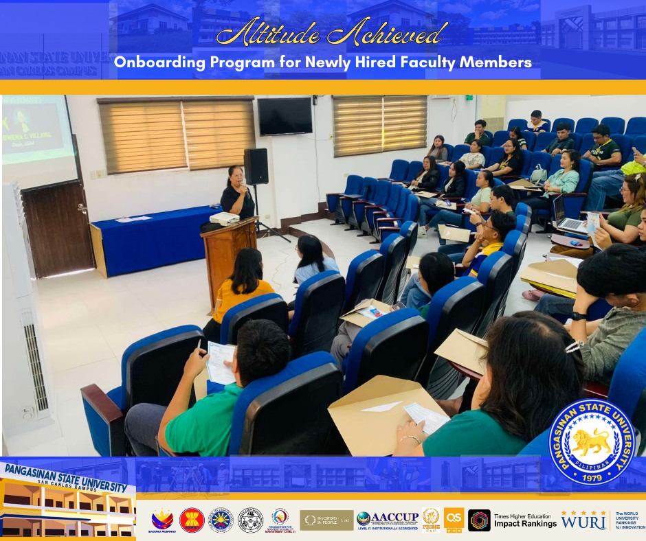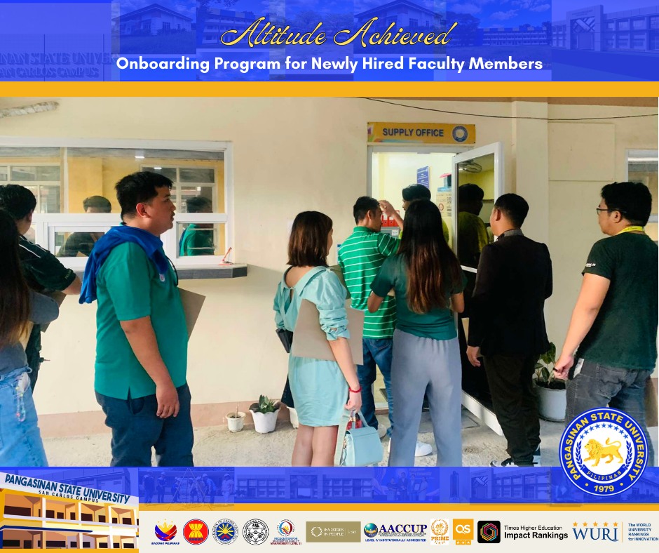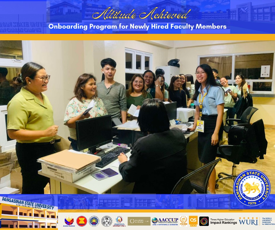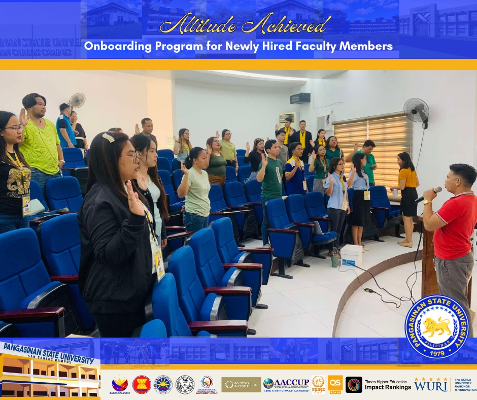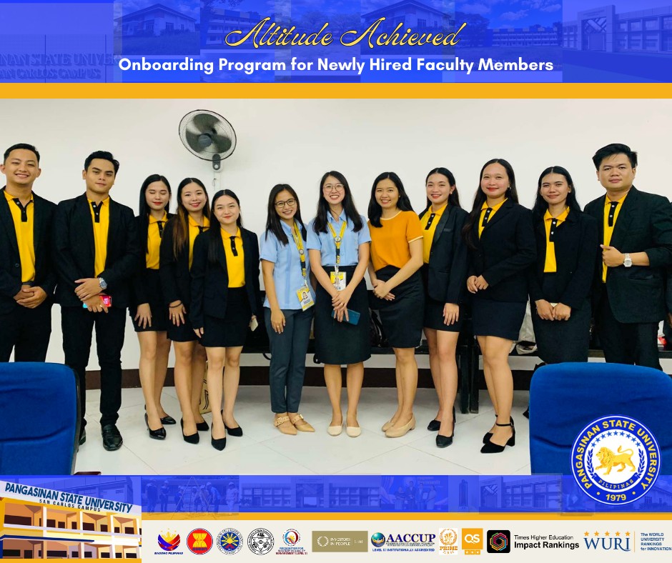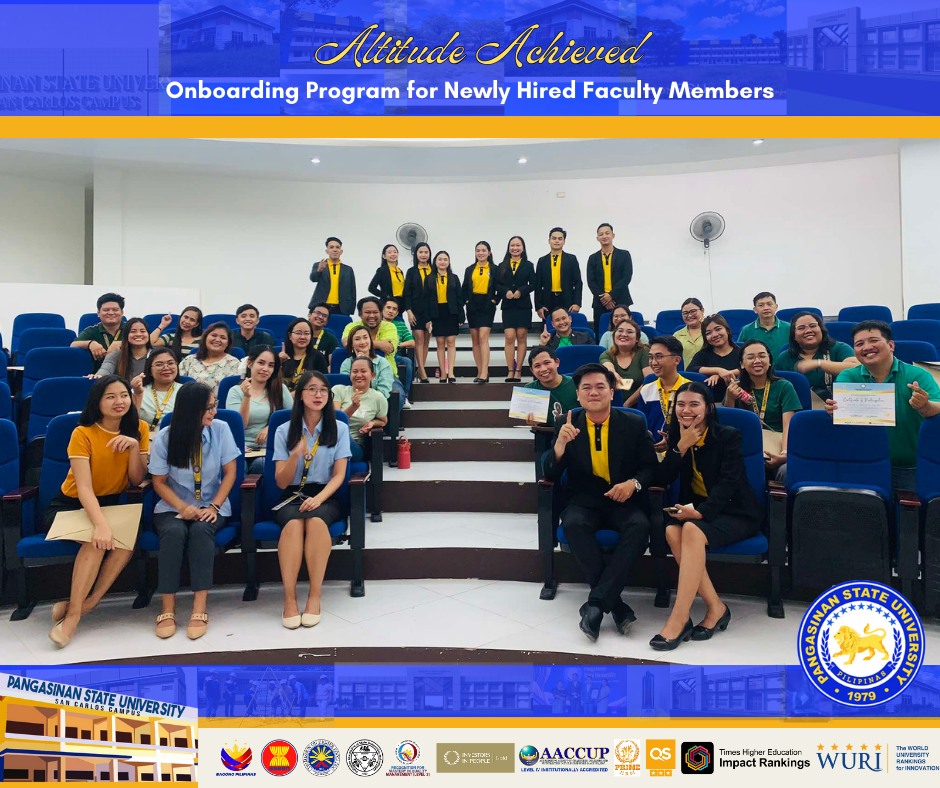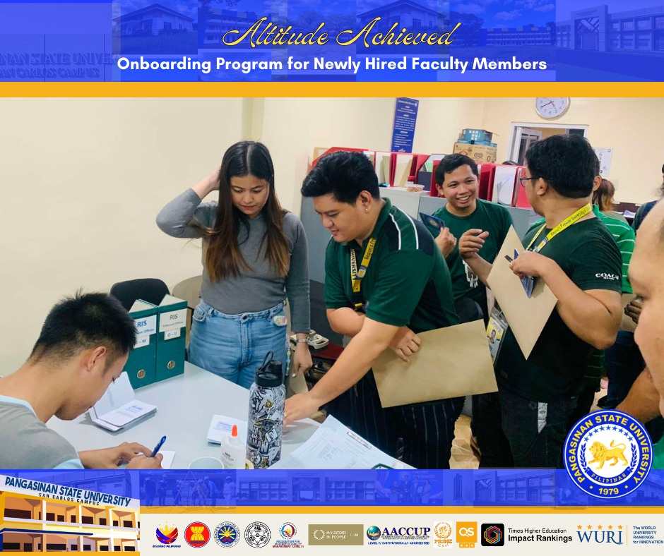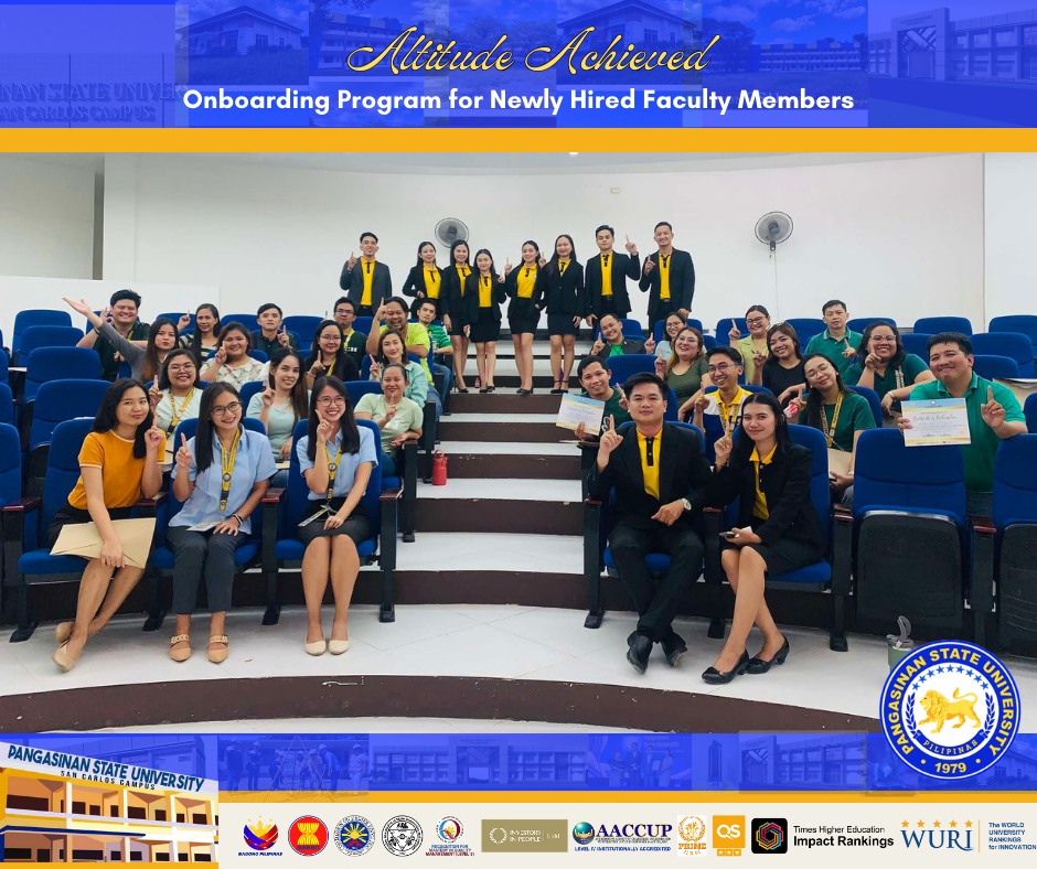 The onboarding program is an official welcome and orientation program for newly-hired employees to the campus that is organized every after the oathtaking ceremony with the University President. Through such events, Pangasinan State University may steer its employees toward the road to quality education and excellence by molding them to become people’s champions, continuous- innovative learners, and community developers to the university and society.